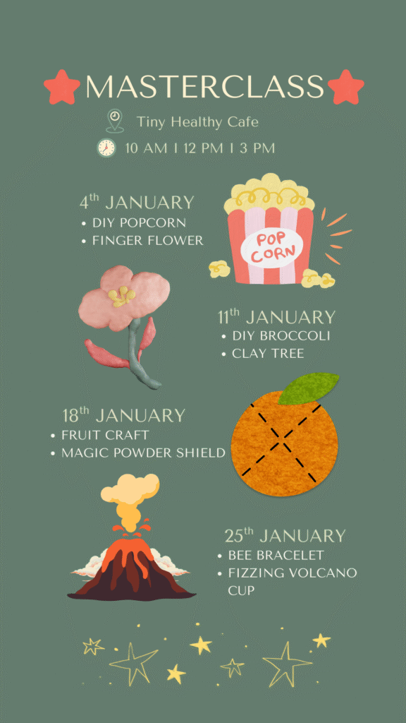 Looking for the best kids’ activities in January? Start the new year with a burst of creativity! Tiny Healthy Cafe is hosting a fantastic lineup of hands-on Masterclasses and delicious Cooking Classes every weekend.
