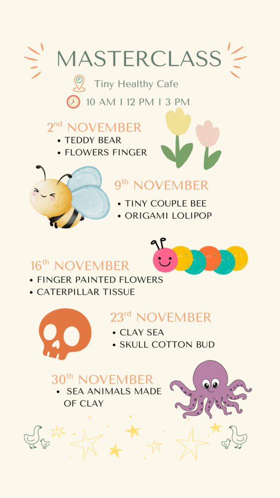 Looking for the best kids activities in November? Tiny Healthy Cafe is hosting a fantastic lineup of creative Masterclasses and delicious Cooking Classes every weekend! Located right here at Tiny Healthy Cafe, we provide a fun, engaging, and healthy environment for your little ones to learn, create, and make new friends.